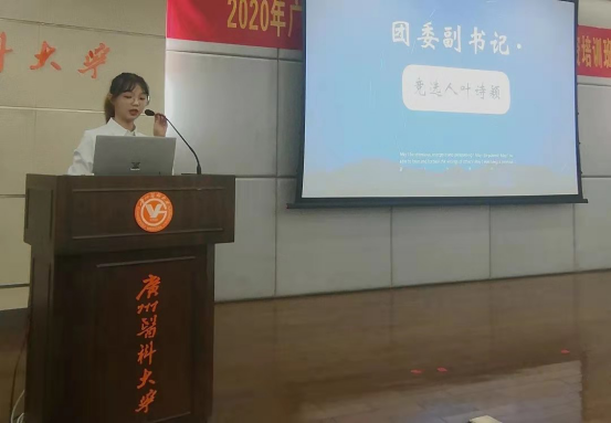 广州医科大学护理学院第十六届团委学生会换届大会暨第十届学生委员会成立会议于2020年9月24日19 :00—21:00在广州医科大学越秀校区十栋十三楼学术报告厅如期举行。出席本次大会的嘉宾有护理学院学生办欧丽娅主任,学生会主席董岩,副主席代思迪,团委副书记陈旭璇,团总支书记王志豪。