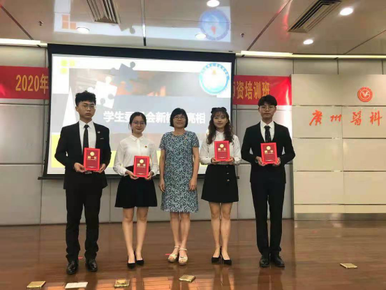 结束候选人的展示环节后,接着是学生会主席董岩作2019-2020学年团委学生会工作总结及欧丽娅主任为新委员董岩、代思迪、王志豪、陈旭璇发放聘书。