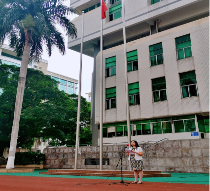 护理学院党总支雷丽琼书记、办公室叶盛主任、学生办辅导员、老师代表及我院越秀校区全体同学参加了升旗仪式。学生办欧丽娅主任主持升旗仪式。