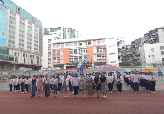 升旗仪式的第三部分是全体师生一起合唱“我和我的祖国”,有一种旋律,拨动我们的心弦;有一种声音,点燃我们的激情。师生们饱含热泪,唱出每个人心里话:“我和我的祖国,一刻也不能分开...”深深的爱国情怀随着旋律流淌,我们用最真诚的歌声唱出对祖国的热爱和祝福。