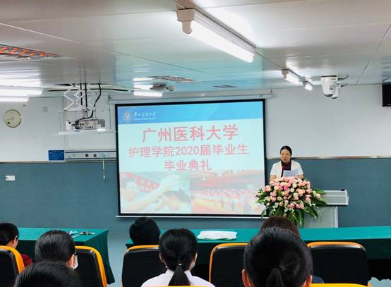 即使岁月流逝,时光也带不走执着的梦;即使天各一方,距离也切不断永恒的校友情。2020年6月23日上午,广州医科大学护理学院隆重举行2020届线上线下毕业典礼。学院领导班子、全体教职员工、优秀毕业生代表等近40人线下参加本次毕业典礼。全体毕业生、在读本科生在线参加毕业典礼。雷丽琼书记做主持。