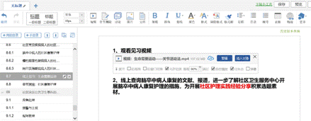 开展线上见习的教学资源主要来自三个方面:一是在学校在线开放课程建设中录制的微视频,专门介绍社区护理实践,如实地再现社区医护人员的工作状况;二是以往学生在社区护理见习时自拍的视频;三是关于社区卫生服务的新闻视频。这三类视频从不同角度反映了社区卫生服务的状况,非常适合线上见习。我们开展线上见习的具体做法是,学生分组后,各自观看线上见习提供的微视频,查询相关资料,通过小组学习,总结社区护理实践中的某项主题,完成并提交作业。教师利用超星平台的“聊天”功能,在后续“社区护理实践分享”课中组织学生们分享作业内容,交流社区护理实践心得。第六周给出的线上见习任务是围绕观看“生命需要运动——关节活动法”等视频,开展脑卒中病人康复护理的线上见习。(见图2-1、图2-2)
