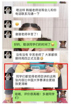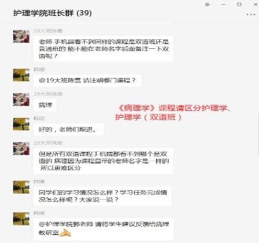 教学反馈是教学实施的最后一个环节,直接影响下个教学环节的教学质量。为做好教学反馈,教学科研管理科设置专门的“班长微信群”,为更好地解决学生们在课程和系统使用等各方面问题搭建了一个良好地沟通桥梁。同时,教师们通过学生在线测试结果、课堂反馈、微信、qq等平台互动,了解学生们所思所想,所需所求,为教师们下一步工作计划奠定了坚实的基础。