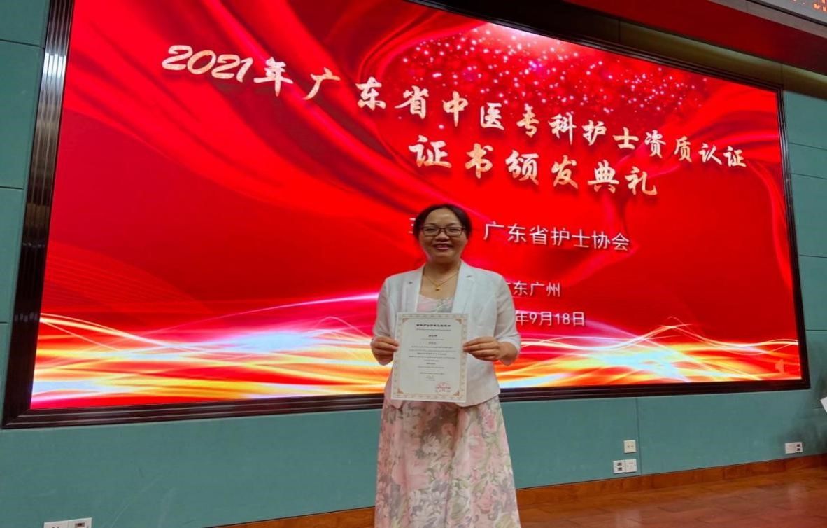勤奋耕耘,砥砺前行。2006年6月从我院护理学专业本科毕业,获学士学位,本科毕业后入职我校的附属第二医院。2010年她作为护理骨干前往广东省中医院进修,2016年担任中西医结合病区护士长,协助科室开展中医护理治疗工作,并带领学科于2017年获得“广州市中医护理重点专科”建设项目。2019年她参加广东省中医专科护士学习后,在临床中大力推广及应用中医特色护理技术。她根据专科病种特点,申请了棍针拨筋疗法、刘氏火熨术、火龙罐、温通刮痧4项院内新技术,配合医生开创了调脊通督、气血调达、引火归元3项专科特色技术。她协助科室开展中医特色技术共35项,其中护士单独操作23项,惠及一方群众。近3年中医科病房中医护理技术每年的应用量约1.8万例次,产生约100万治疗费。她开设中医护理门诊,用所学的中医护理技术帮助病人,疗效深受同行及患者的好评,其年门诊量达2500人次,创造近50万治疗费。她于2021年顺利通过了第一届中医专科护士资质认证考核,成为了第一届全国仅有26名通过认证的成员之一。