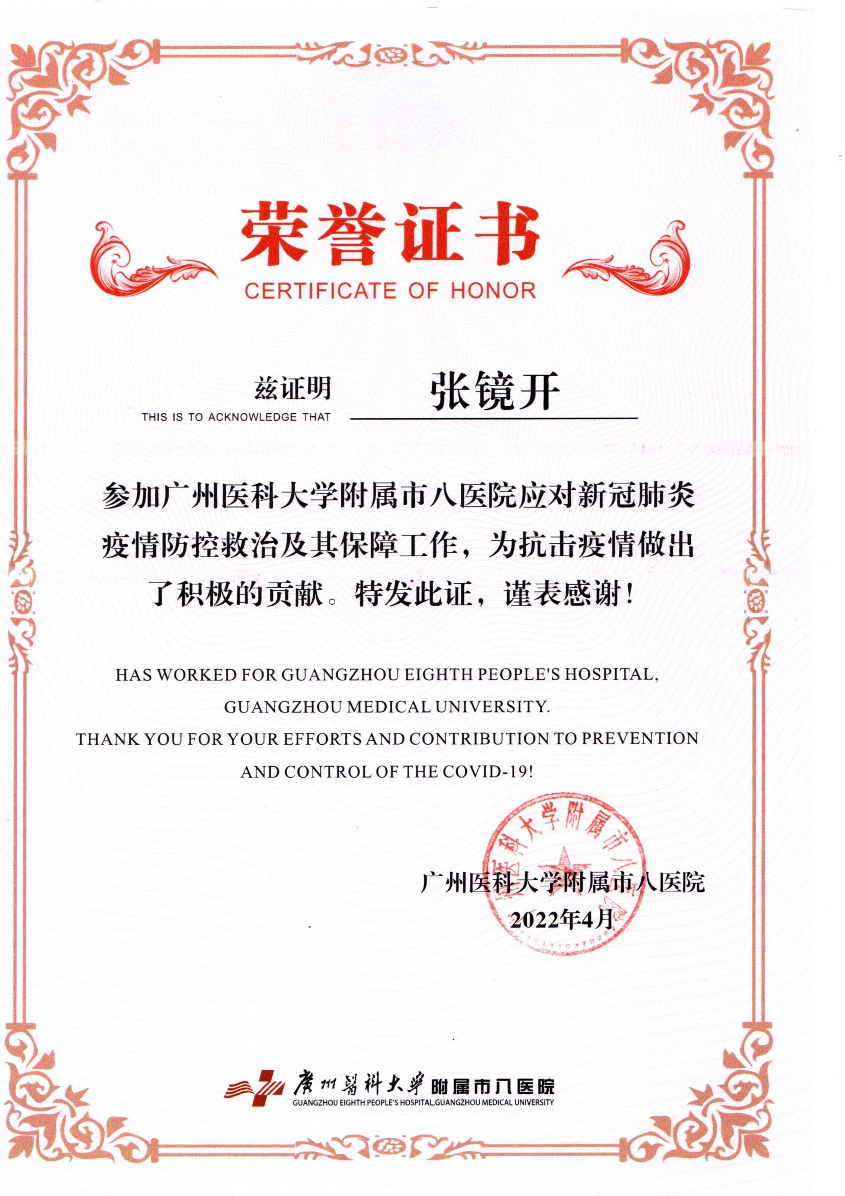 从踏上岗位的那一刻起,他就立志不断提升自己,在工作岗位上贡献自己的力量。经过多年的岗位上努力学习以及在北京协和医院、广东省人民医院、广州医科大学附属第一医院的进修学习,张镜开已熟练掌握了各种抢救与配合的知识与技能,如高质量CPR、气管插管、电除颤、机洗胃、体外起搏、呼吸机使用、ECMO使用及配合等,也对临床工作的良好运行有深刻体会,协助制定急诊分诊标准,胸痛、卒中中心工作指引等,良好的工作效果得到了组织的认可。他曾2008年奔赴汶川当地完成“抗震救灾”医疗支援工作,获得“广州市抗震救灾先进个人称号”;完成2010年第16届亚运会及亚残会等多次医疗保障工作;担任多次如横渡珠江,广马,广交会等医疗保障,均出色完成任务。疫情期间,他坚守第一线,奔赴广州市第八人民医院肩负负压转运工作,出色完成任务。他时刻保持对生命的敬畏之心,为有效救治患者竭尽全力,获得医德医风优秀个人称号;他对科室建设尽心尽力,从分诊信息系统的建设,抢救与配合流程的建立与改善,疫情期间各种指引、流程的制定、落实于质控都渗透着他的努力。2018年张镜开任急诊分诊抢救区护士长,期间工作认真负责,兢兢业业,履行护士长的职责,配合科室推广新技术与进行培训工作。他带领护理团队紧跟科室步伐大力发展起在周边影响较大的较新的急诊分诊信息系统,也更好的贯彻国家“急诊患者分级分区,按病情处置”的宗旨。带领护理团队从对ECMO(体外膜肺氧合)的一无所知到能独立开展,工作效果得到了肯定。进行“创新型冰帽”QCC项目,这个项目获得了医院的QC项目二等奖以及第二届省护理用品创新大赛三等奖。从2008年开始,他开始负责临床带教工作,含省级、市级专科护士,进修,轮科,实习,见习,学院在校学生等各层次护理人员进行带教和授课,教学效果得到了各方的肯定,期间制作人卫慕课及参与授课比赛并获奖。出色的工作得到了肯定,张镜开曾获国家级的急诊医疗改善奖,广州市优秀护士称号、2次获得病区护理质量奖,3次获得医院优秀护士称号。